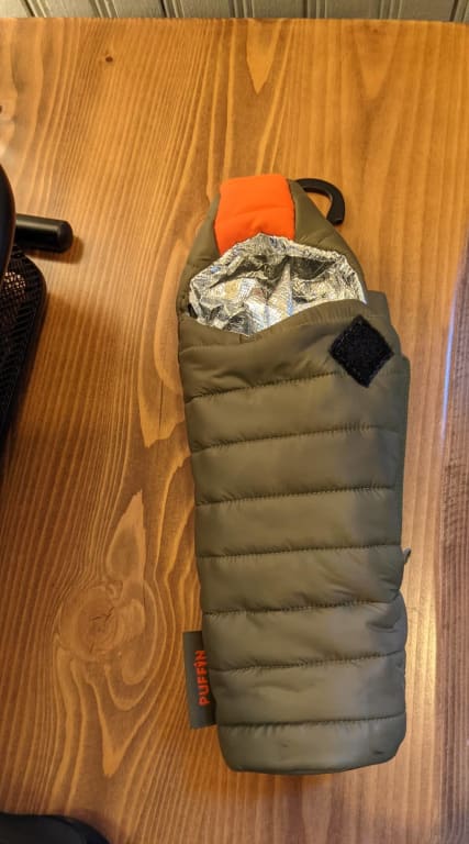 Keeps bottled drinks cold or warm for quite some time. Easy to insert a typical beer, soda, or other, bottle container and hold in hand.