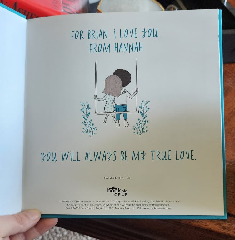 This was one of my boyfriend's birthday presents, he smiled the whole time reading it. He was teary-eyed by the end and said it was the best present he's ever received. We will both be cherishing this book for years to come. Very relatable and cute. I only wish there were more customization options, there wasn't any hair that looked like my boyfriend's, and it would be nice to have a fat option. Overall a wonderful gift!