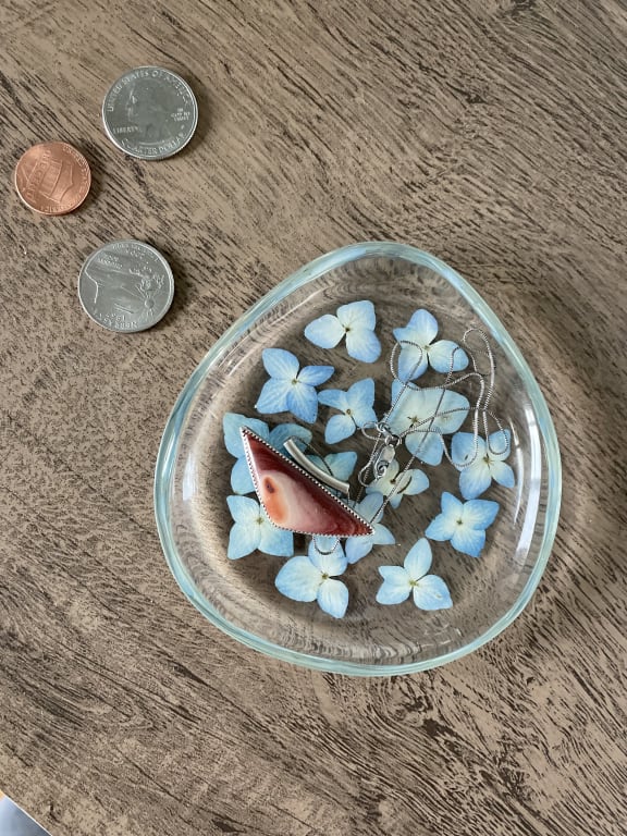 While traveling to keep track of dat to day jewelry and to remind of the myriad of hydrangeas at home