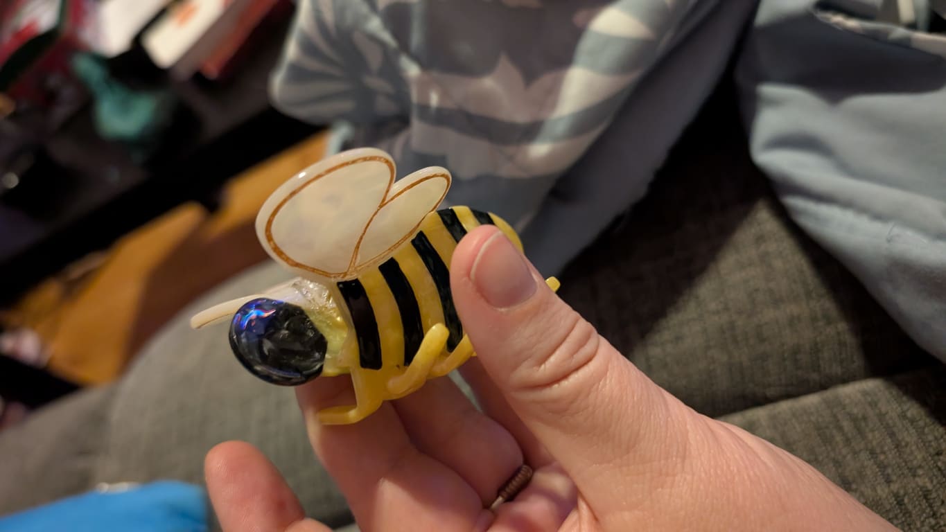 I bought the bee for a Christmas present for my spouse, and it's already broken in two places. One side of the bee head snapped when she was putting it in her hair, and one of the claws broke off after she inadvertently dropped it. It's super cute, and she loved it, but it wasn't worth the cost. It also doesn't feel like it's made of flimsy or cheap material, so I was surprised it broke so easily.