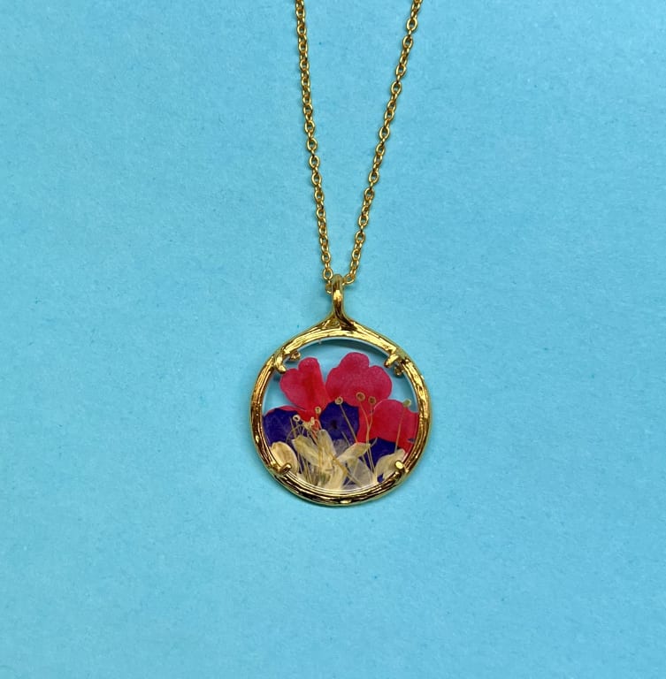glass, silver plated brass, gold plated brass, natural pressed flowers