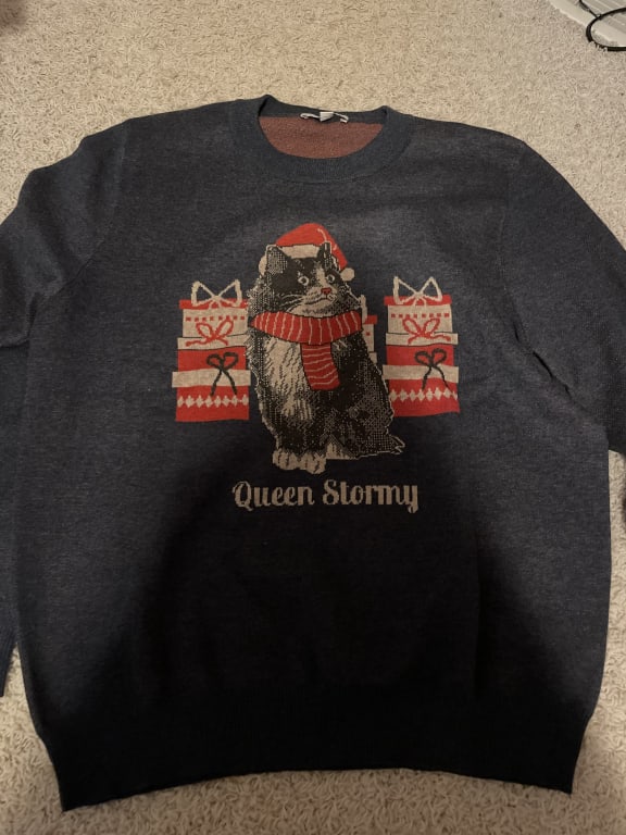 I bought this for my son who is a freshman in college. He really loves and misses our dog and cat AND loves crazy Christmas attire, so this sweater was a win-win! I can't wait to give it to him over the Thanksgiving holiday!!