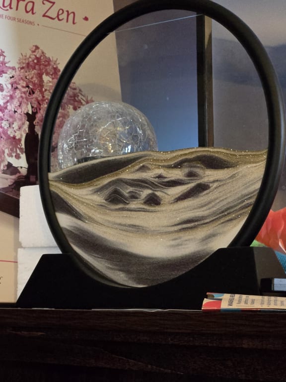 I love this thing. When work gets overwhelming, I'm immediately calmed by flipping this Sand Art piece and meditatively watching a new landscape form before my eyes. It fits comfortably and unobtrusively on my desk; it's the perfect size to draw the eye without taking up too much space. The feature of adjusting how much air/resistance is within the piece to change the rate of sand flow makes using and watching this Sand Art infinitely interesting to me. It's well-designed and exactly as advertised/as it appears in the product video! My coworkers are also obsessed. Unfortunately, someone managed to drop it by accident a few weeks ago and slightly fractured the glass; without hesitation, I bought a replacement. The price is totally right on this bad boy, especially if you're partial to perpetual motion machines like I am; it's cooler than a lava lamp and better than a fountain.