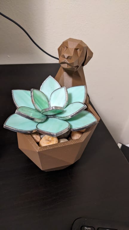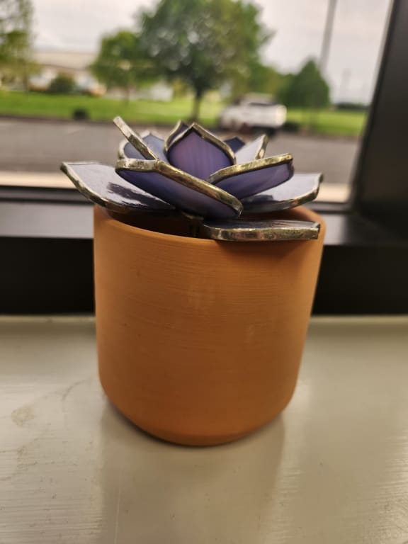 The glass succulent is exactly what i wanted to give my dad for Christmas. Excellent quality and with the pot it's a perfect match.
