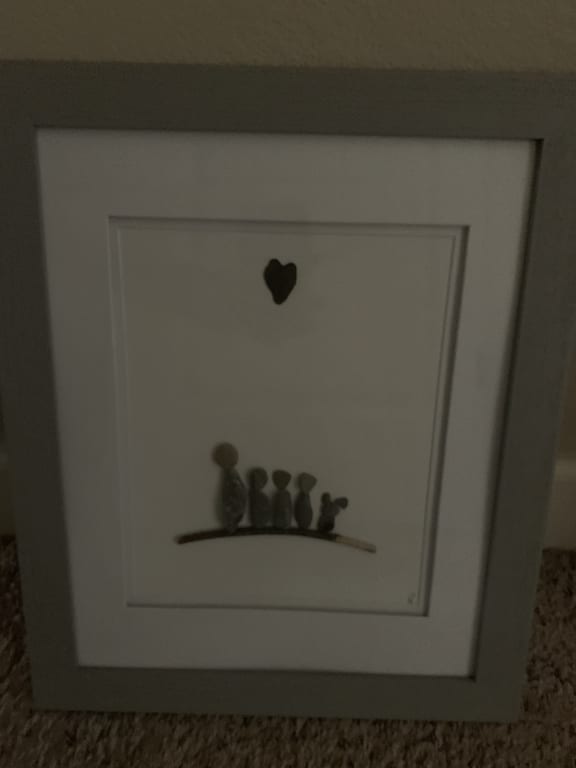 This is a sweet & simple representation of my family. I especially love the use of stones and a twig because we like to venture out on nature walks often. I bought this as s birthday gift for my husband, and he was quite touched by it.