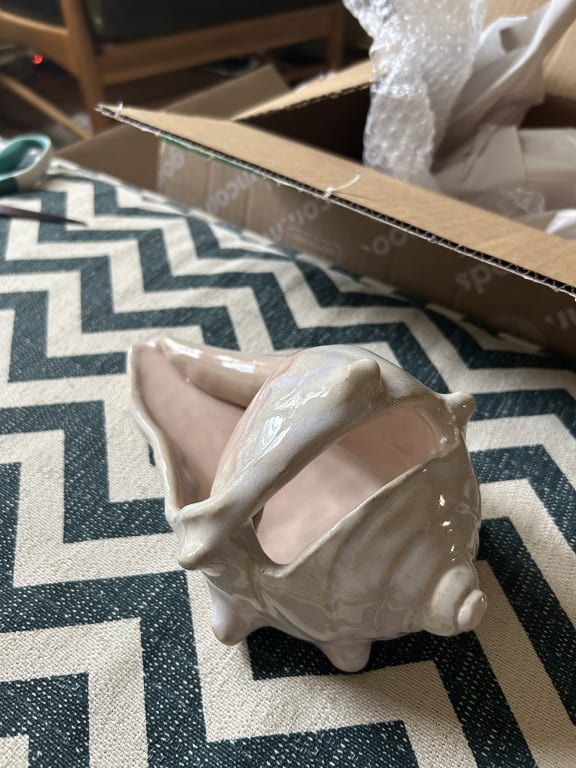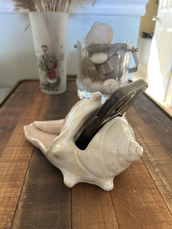 I bought this handmade conch shell phone amplifier for my beach house. It came really well packed which I was worried about bc it's ceramic. It's bigger and heftier than I thought. It sits really well on a side table or even outdoors on a ledge. Because of the weight, I'm not worried about it getting knocked over. It really compliments and beach themed decor. The glaze finish is beautiful and very shell realistic with a pearly finish. The sound is def amplified through the shell. I bought one for myself and one for a friend and it makes a great gift. I'm very happy with my purchase.