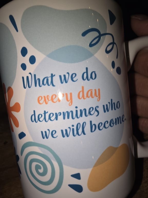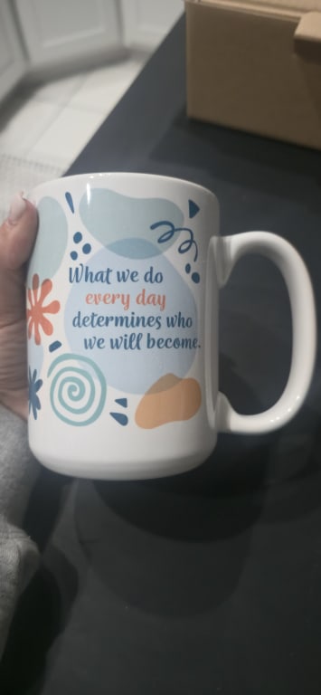 Give this inspirational mug to someone special, or treat yourself to something that brings you joy or makes you feel empowered! The mug reads, "What we do every day determines who we will become." The QR code provides a message for every day of the year. Embrace it, one sip at a time.