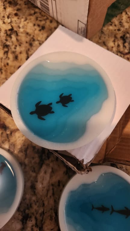 I gave these coasters as a gift to a friend who loves the ocean and diving, and they were a hit! The top-down sea creature visual was even better than I hoped in the resin, and I received a lot of praise from the recipients on how pretty these were and how well they went with their ocean-themed decor. I'm honestly considering getting a set for myself now. Definitely would recommend for ocean-loving friends!
