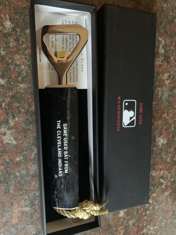 Each opener comes gift-boxed with a story card including instructions for its special authenticity hologram number, indicating which game the bat was used in.
