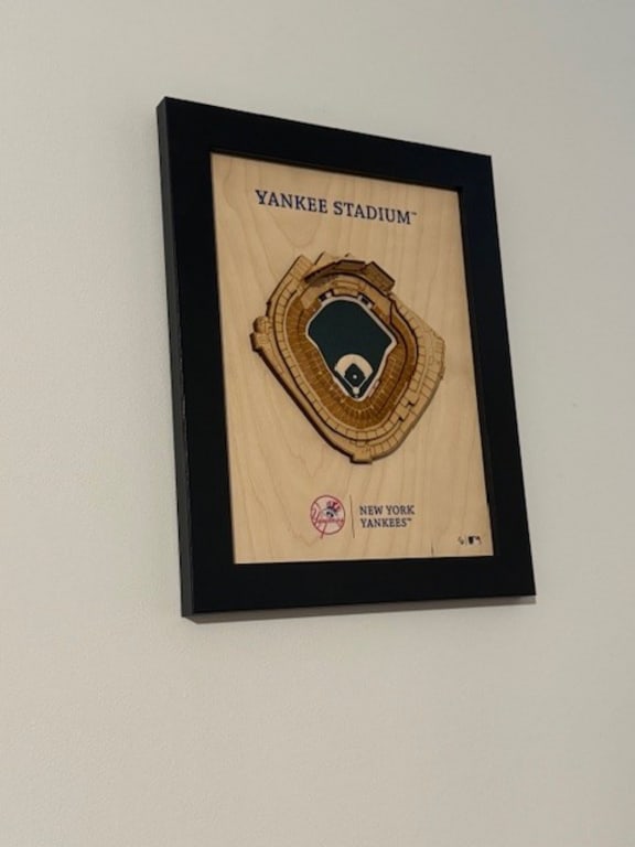 Any Yankee fan would love to have this beautifully crafted piece of woodwork in their home! We hung it up in my baseball-loving son's room immediately. We are impressed with the detail. Thick, solid materials used. A great conversation starter and certainly, an uncommon and unique piece for the home.