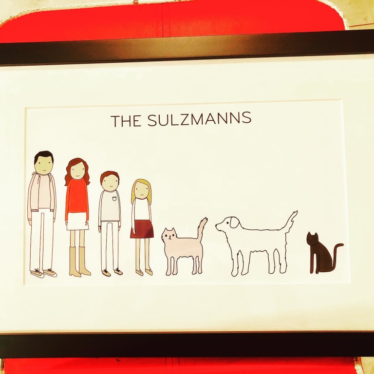 Since the print was a gift, we were excited to see it ourselves (me and the kids). It's not too big or small and is a wonderful item to hand in many places. it is a fun design, simple, yet enjoyable. The ability to add our two rescue rabbits to the picture sealed the deal!