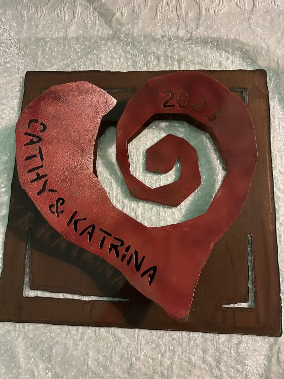 This unique " farmhouse chic" piece of art is a great gift for anyone, whether a newly wed, anniversary, or Valentine's Day gift. Colors are rustic and wonderful red. It is well made and easy to hang. It was the hit of the wedding shower, with lots of "oohs and wows! It also arrived in a very timely manor Order today for a fun, unique gift! You won't be disappointed!