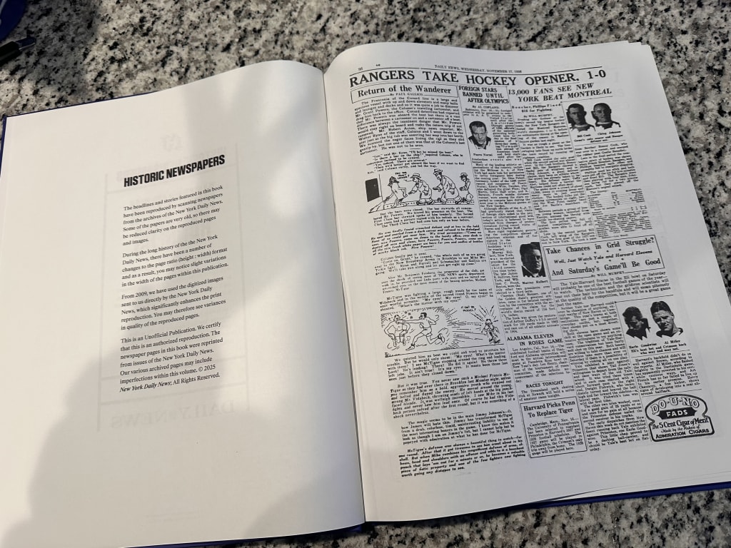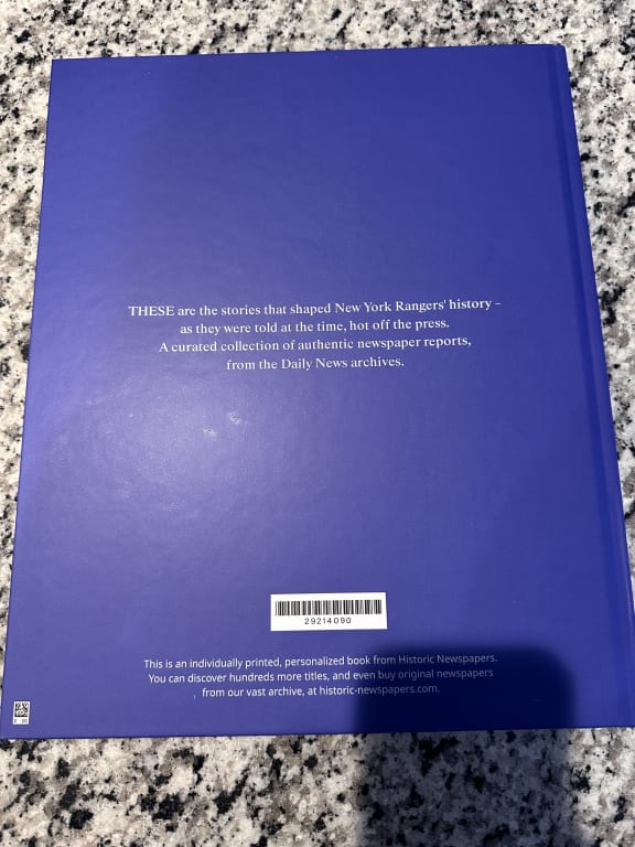I got this book personalized for my fiancé and he really loved it. He had so much fun traveling through time and learning the history of the New York Rangers, flipping through different eras and big moments was really cool. The book size is perfect for reprints of real newspaper articles and makes everything easy to read. The front title cover is elegant and modern, so it looks great displayed on a coffee table. The personalization made it feel extra special. This book is such a thoughtful gift for any hockey fan.