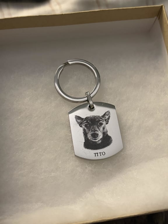 This personalized pet keychain is so cute, and I'm really happy with how it came out! The keychain itself is great quality and feels sturdy. I sent the recommended photo, and the likeness is adorable. The only downside is that the photo looks a bit pixelated up close. Other than that, I would definitely recommend this product