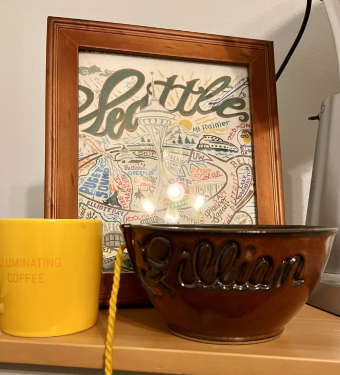 The beautiful bowl with my cousin's name on it is so special.