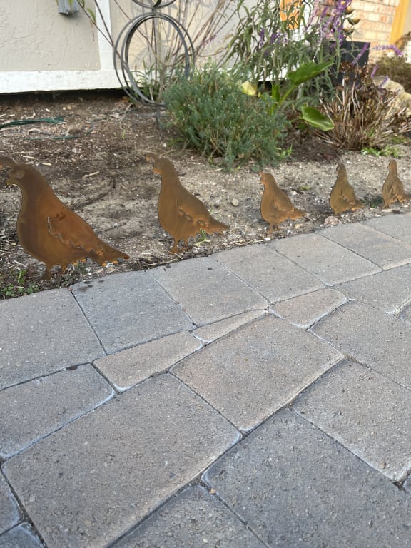 I got these for my mom who loves birdwatching. She watches 3 or 4 families of quail wander through her yard each year, and this is a sweet reminder year round. Well-made and durable, these have done well in the hot, desert sun, wind, and rain.