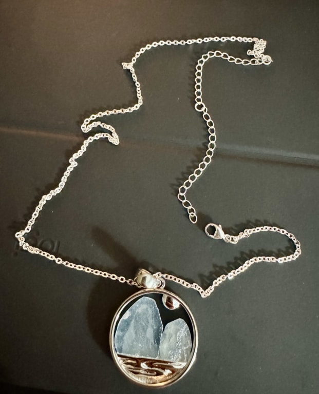 First.. it was several weeks later than it said it would ship. Secondly…This necklace is absolutely not worth the price. The chain looks like the cheapest chain I could find and not even a connecting larger link on the end of the chain to attach to the clasp. So cheap. The stone part of the glacier is not as pretty as the picture and overall just not worth the price. Sadly disappointed.