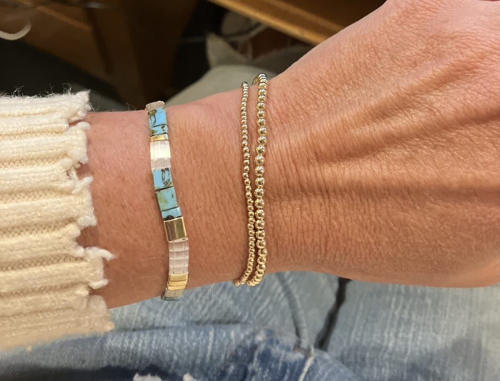 I got this to give as a birthday present and I couldn't be more excited. It's exactly as pictured/as I hoped it would be. She's always stacking lots of gold bracelets and this is going to perfectly add to her stack! I love the pop of color some of the beads add!