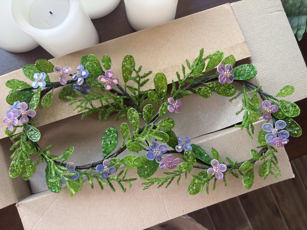 This item is pretty from a distance, but up close it looks plasticky and cheap. I know it's handmade and uses crushed glass, but it doesn't look like it. It looks like something inexpensive you could purchase in a craft store, where they sell plastic flowers and stems. The leaves especially remind me of flowers I made in the 70s with DipIt. You twisted wire and dipped it in some type of liquid plastic and it dried into a plastic film. I bought this on sale, and think even that was overpriced.