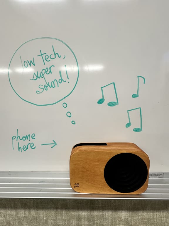 I really enjoyed using the bitti gitti wooden stereo speaker at work. At first, it sat on my desk purely as a sleek piece of decor. When I finally tried it later in the day, I instinctively looked for a cord, a Bluetooth button, or some hidden tech—then laughed when I realized there was none. I pressed play on my phone, slid it vertically into the slot (even with an Otterbox, my iPhone 14 Pro fit easily), and was immediately surprised by the rich, resonant sound. The audio felt almost mysterious—so full for something so simple—that I actually picked up the speaker and turned it around, convinced I must be missing a hidden mechanism. I wasn't. The music just sounded that good. And because my phone was physically inside the speaker, it stayed out of my hands. I finished a report I'd been avoiding all weekend, uninterrupted, without the usual impulse to scroll. Since using it, my phone spends less time in my hands and more time doing what I actually want it to do: play music. Whether this is a review of a wooden speaker or a realization about my relationship with my phone, the result is the same: this product has changed the way I work and enjoy music simultaneously. Definitely for the better.