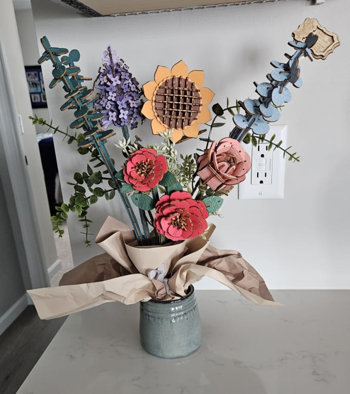 I gave this to my mom for a gift. It is so sweet and enjoyable to put together: Harder to figure out than expected, but she got it. It was joyful to give a gift that was an activity and then put it a small vase and she is enjoying seeing it daily. I love to find surprising, fun gifts in Uncommon Goods!